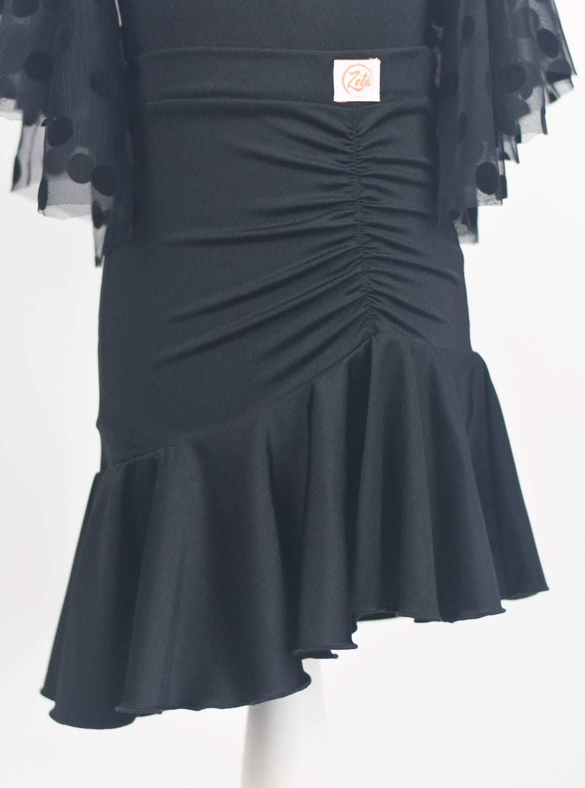 Lycra skirt with ruffle, hem with ribbing and elastic band at the waist.