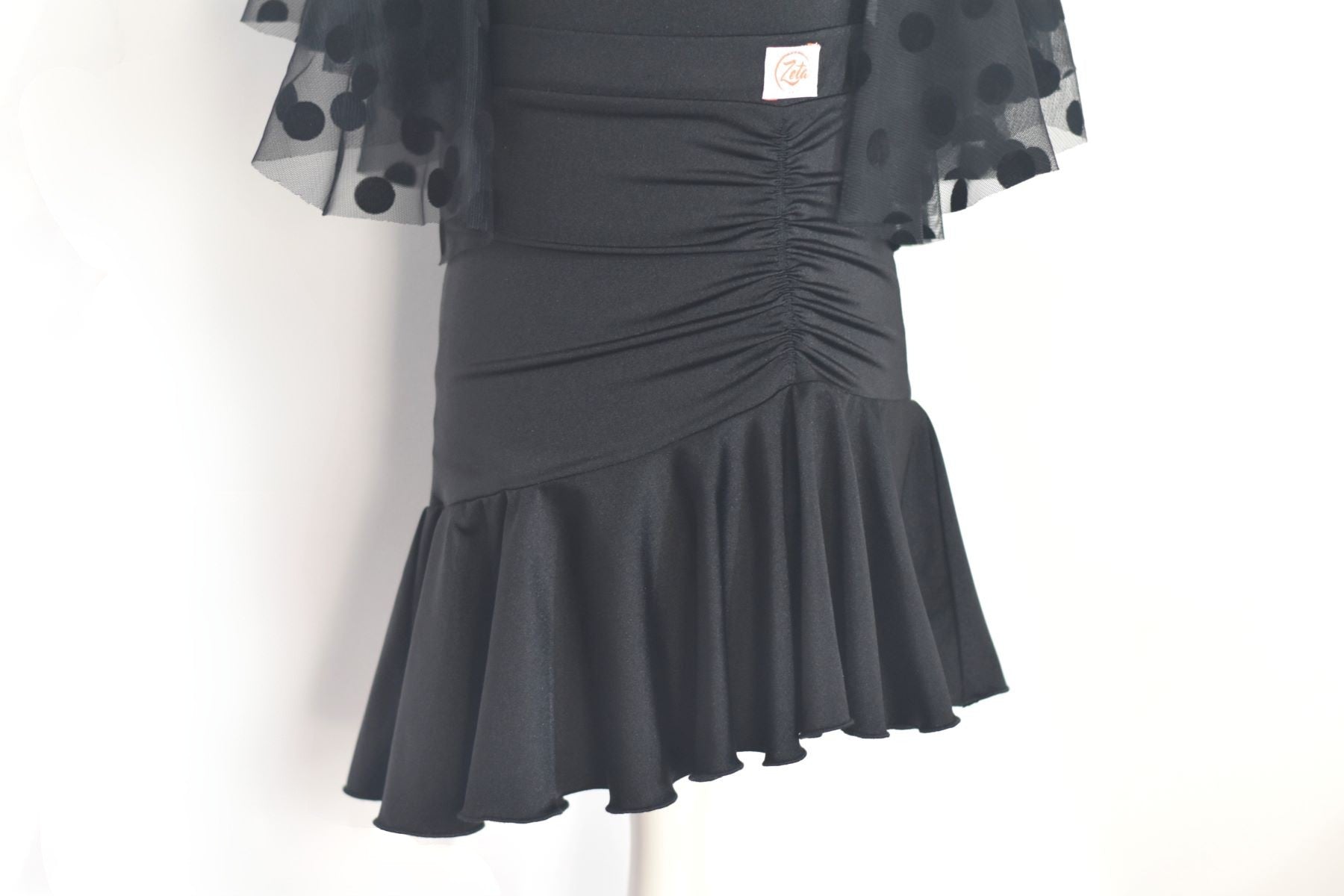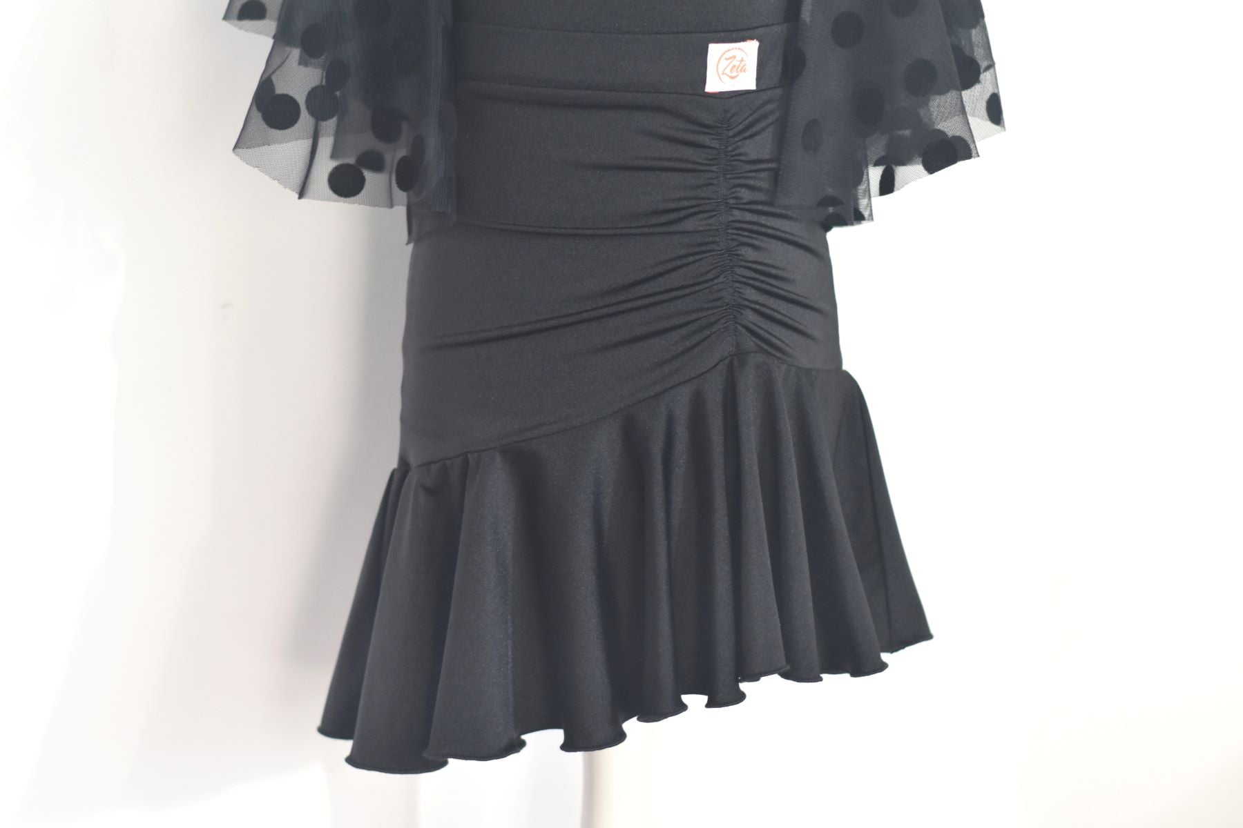 Fusta Alix cu volan diagonal este confectionata din lycra lucioasa si are urmatoarele caracteristici: