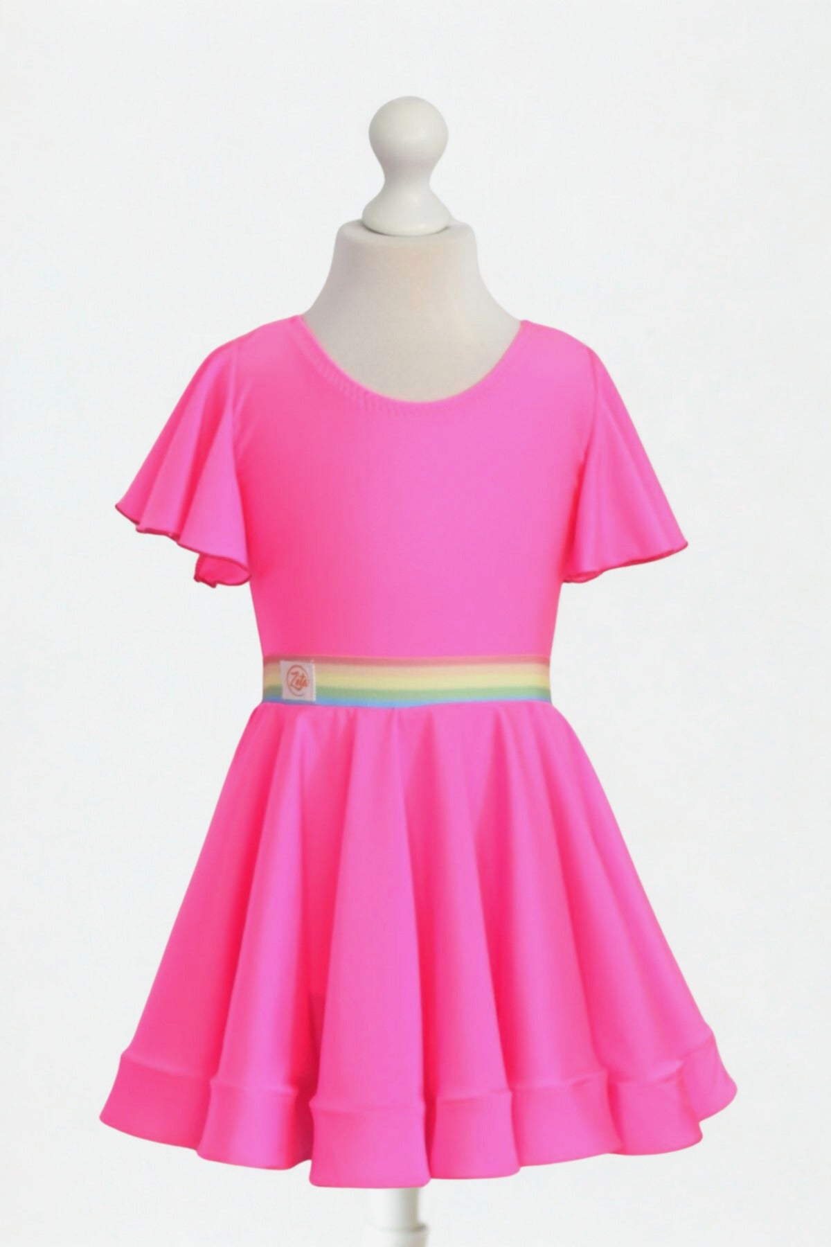 - Fusta circulara Alycia din lycra, tivita cu rijelina si banda elastica in talie cu imprimeu curcubeu. Lungimea fustei este pana la genunchi+3 cm.